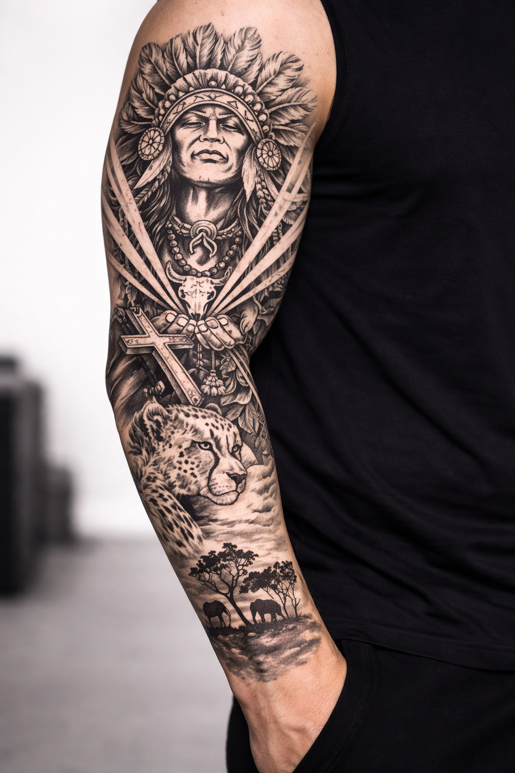 Guardian of the Sacred Land. Ultra-realistic temporary tattoo designed for bold statement wear.