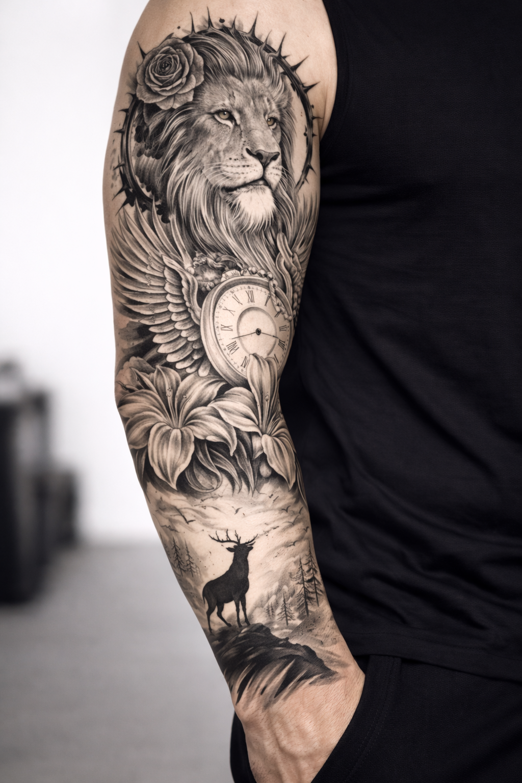 King Beyond Time. Ultra-realistic temporary tattoo designed for bold statement wear.