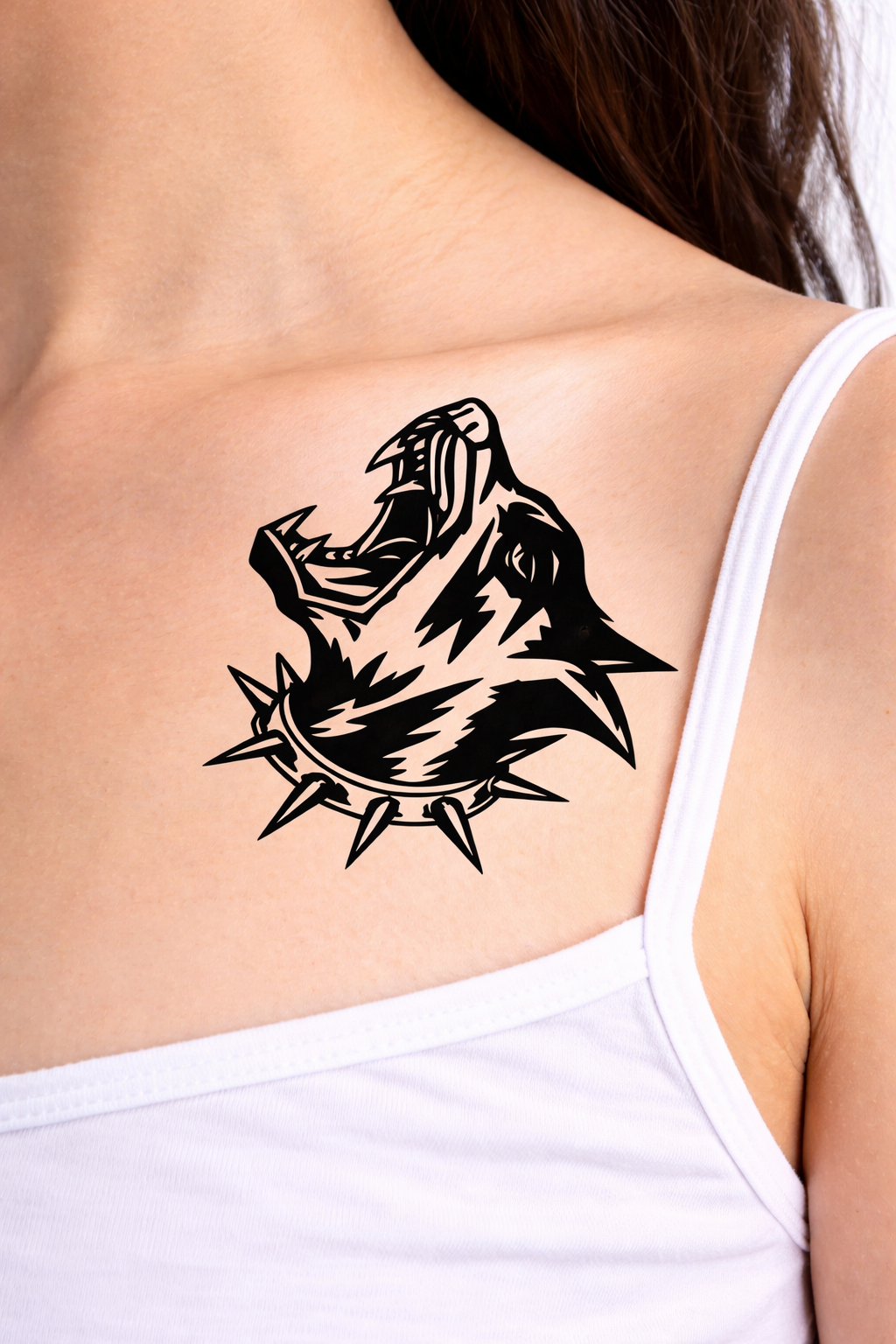 Roaring Wolf. Ultra-realistic temporary tattoo designed for bold statement wear.